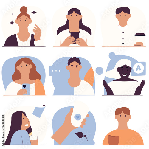 Lidé dávat srdce sdílení lásky k ostatním, ploché vektorové izolované ilustrace. Charita, dar, dobrovolná pomoc.