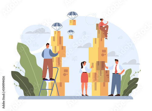 Lidé se připravují na Nový rok a vánoční svátky oslavy, ploché vektorové ilustrace. Dívky chodící po městské ulici s nákupními taškami, muž nesoucí dárkovou krabičku.
