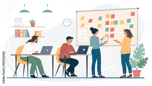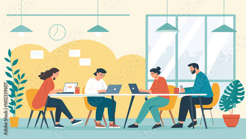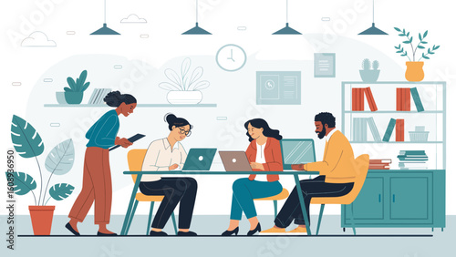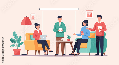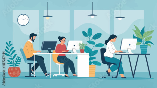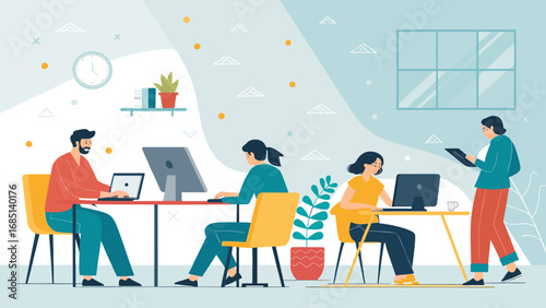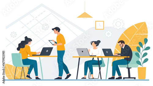 Lidé v kavárně pracují a pijí kávu, koncept vektorové ilustrace. Zákazníci nakupují kávu v kavárně.