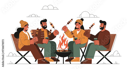 Mladý muž a žena ve sluchátkách nahrávání audio podcastu ve studiu s mikrofony, ploché vektorové ilustrace. Rozhlasový hostitel rozhovor s hostem. Podcasting, vysílání, online rádio.