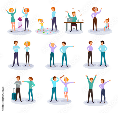 Volební kampaň a hlasování koncept vektorové ploché ilustrace izolovaných na bílém pozadí. Lidí zapojených do volebního procesu. Političtí kandidáti dělají prohlášení, voliči ve volební místnosti.