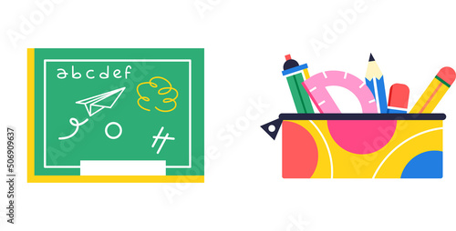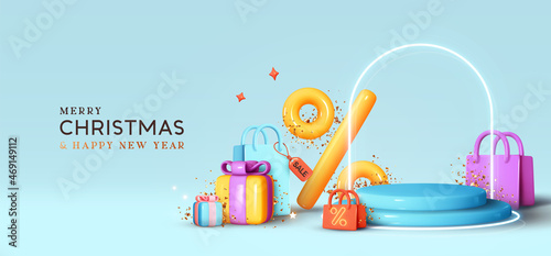 Lidé udržují Vzdálenost v řadě v obchodě s potravinami. Sociální distancování a prevence koronaviry covid-19. Koncept ilustrace. Vektor web design šablony. Košík plný potravinářských výrobků.