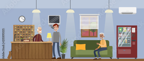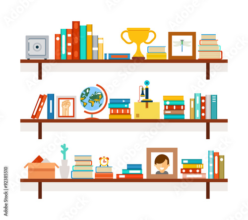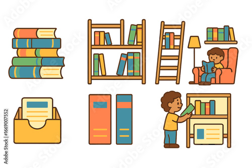 Lidé, kteří hledají knihu v knihkupectví. Knihovna nebo obchod, interiér s regály na knihy. Zákazník nákup knih v obchodě. Koncept vektorové ilustrace.