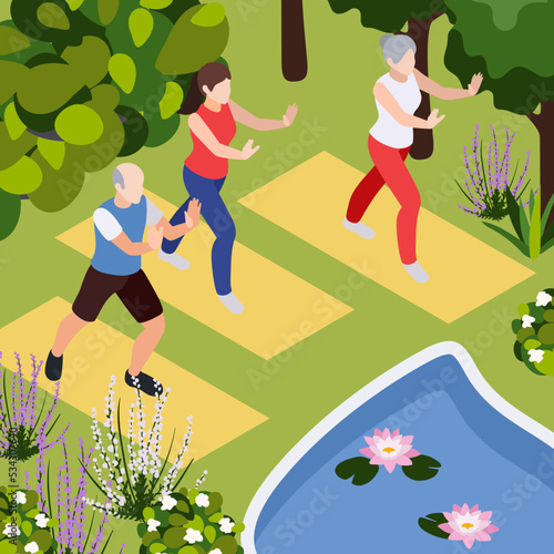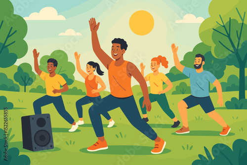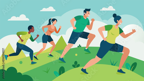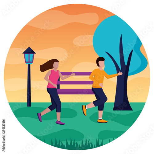 Lidé různého věku běží v přírodním městském parku během ranního času vektorové ilustrace. Mladý, dospělý, starý starší muž a žena dělá kardio cvičení jogging se těší zdravý životní styl