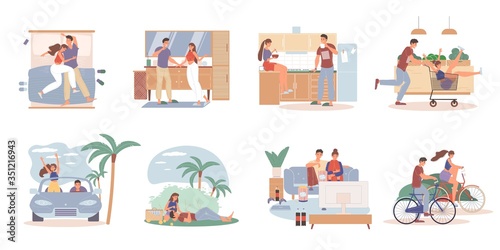 Lidé různých povolání a profesí na pracovišti, ploché vektorové ilustrace. Lékař pediatr, veterinář, vědec, moderátor zpráv, masážní terapeut, rozhlasový hostitel, administrativní pracovník.