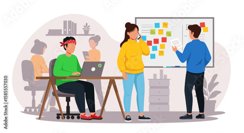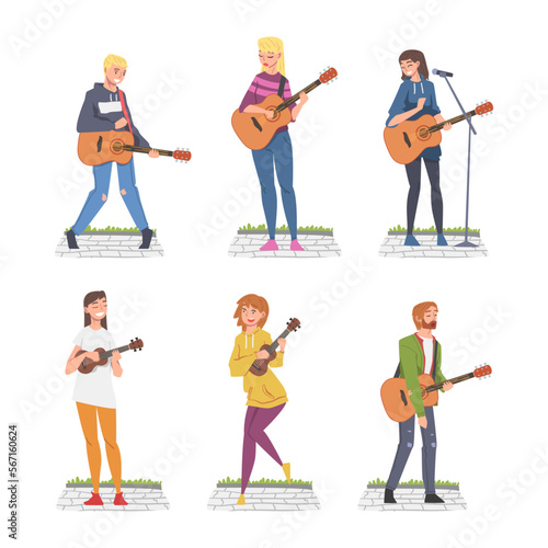 Lidé různých povolání a profesí, ploché vektorové ilustrace. Pracovník v uniformě, sada kreslených postaviček. Kameraman, podnikatel, novinář, zpěvák, policista, stavitel, uklízečka.