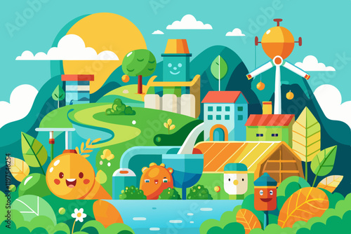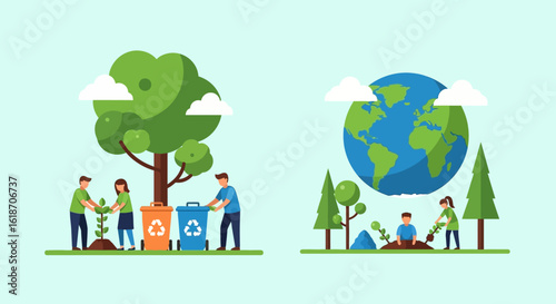 Bbq set, vektorové ploché ilustrace. Piknik s rodinou, přáteli a domácími mazlíčky v parku, na dvorku. Starší a mladé páry, Rodina se dvěma dětmi vaření masa na grilu, jíst a bavit se.
