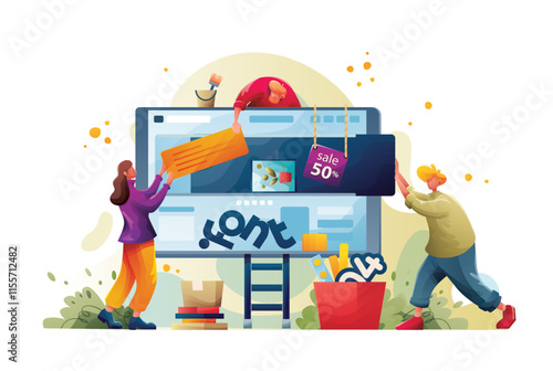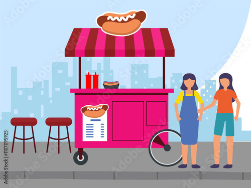 Lidé objednávání sushi, hamburgery a pizza on-line, ploché vektorové ilustrace. Rozvoz jídla Restaurace, Rychlé občerstvení kurýrní služba.