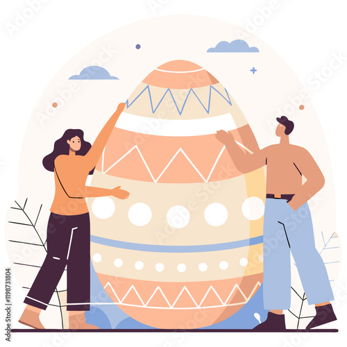 Lidé Malování Velikonoční vajíčko, ploché vektorové ilustrace. Příprava na oslavu velikonočních jarních svátků.