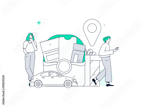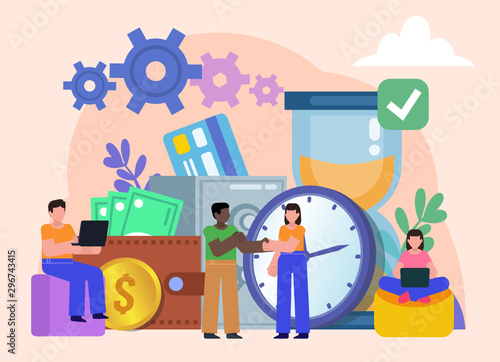 Obří dárková krabička, šťastné koule, malé postavy hrající loterijní hry, ploché vektorové ilustrace. Šťastní lidé vyhrávají ceny. Loterie karban, losování.
