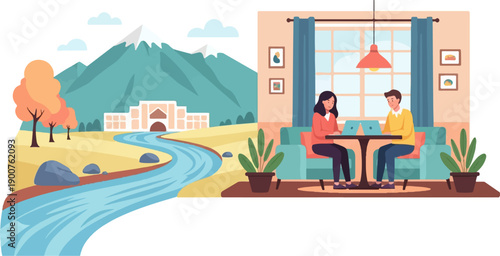 Lidé relaxující u hotelového bazénu, ploché vektorové ilustrace. Luxusní hotelový dům, letovisko. Párty u bazénu. Prázdniny. Pohostinství.