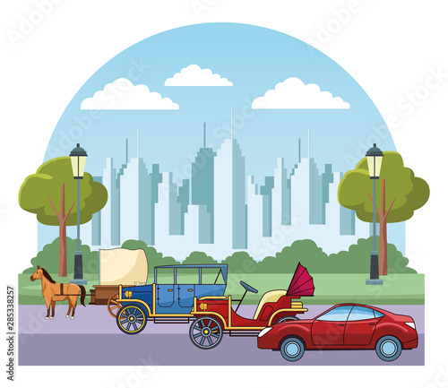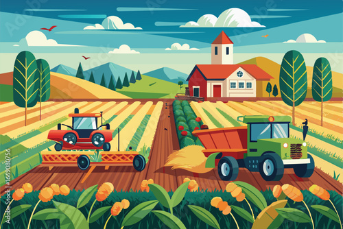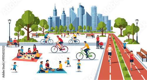 Mladí lidé na horské dráze v městském parku, ploché vektorové ilustrace. Výstaviště, atrakce zábavního parku. Zábava, volný čas, víkendová aktivita. Jízda na horské dráze.
