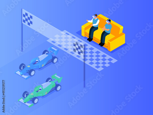 Jízda na horské dráze, ploché vektorové ilustrace. Šťastní nadšení lidé jedoucí rychle otevřenými auty. Výstaviště, atrakce zábavního parku. Zábava, volnočasové aktivity.