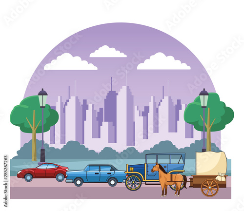 Mladí lidé na horské dráze v městském parku, ploché vektorové ilustrace. Výstaviště, atrakce zábavního parku. Zábava, volný čas, víkendová aktivita. Jízda na horské dráze.