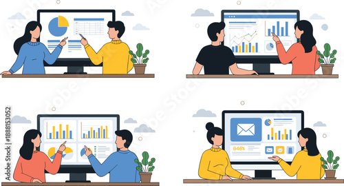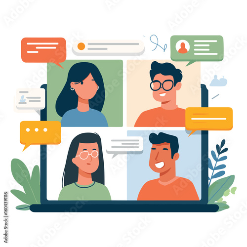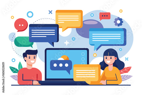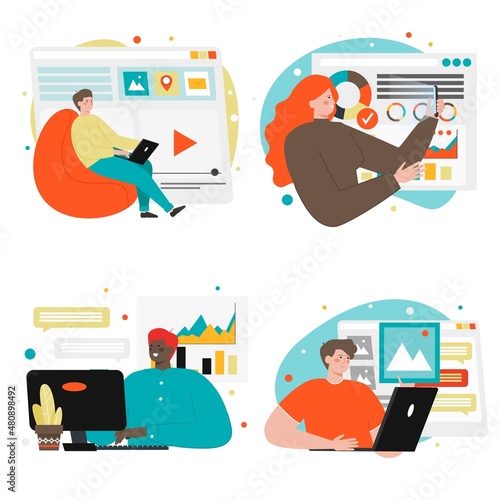 Lidé posílají e-maily, textové zprávy, sms, chatují na sociálních sítích, ploché vektorové izolované ilustrace. Digitální komunikace, online zasílání zpráv.