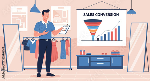 Lidé šokovali rostoucím vektorem cen potravin. Smutný zákazník u pultu ilustrační. Zvýšení nákladů na potraviny. Koncepce hospodářské krize
