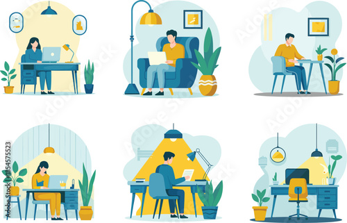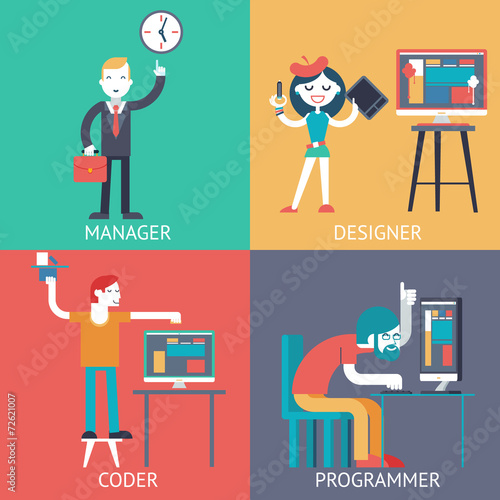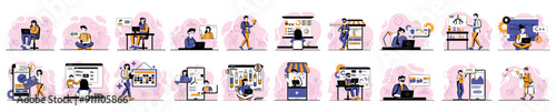 Lidé nakupují v obchodě koncepční plakáty. Barevné vektorové ilustrace. Zákazníci nakupují výrobky v potravinářském supermarketu a zkoušejí oblečení.