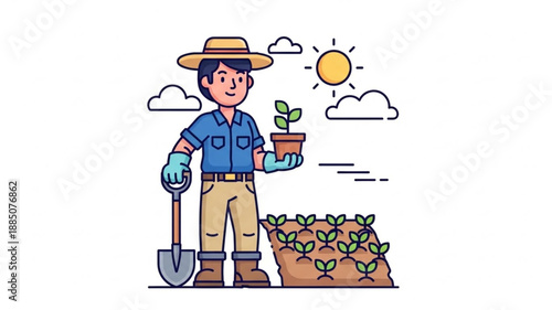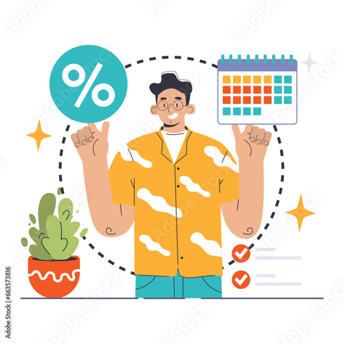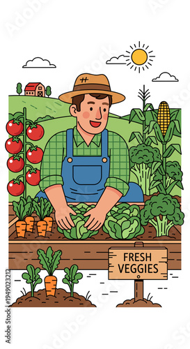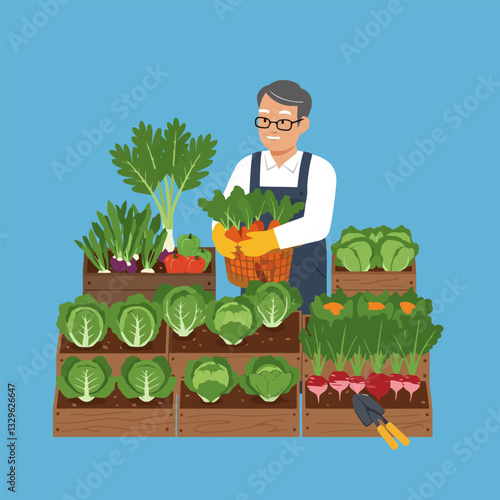 Vektorová ilustrace tržnice se zeleninou a prodavačky s papírovými penězi. Lidé nakupují plochý designový prvek, ikona izolovaná na bílém pozadí.