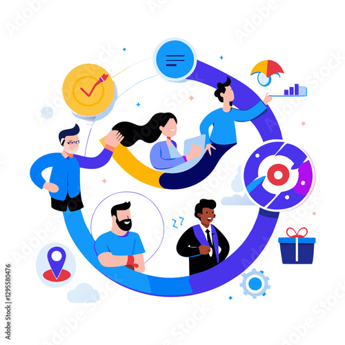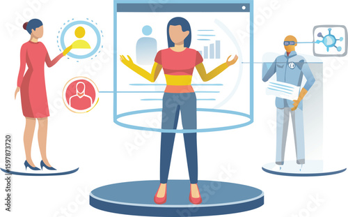 Lidé diváci se těší drone světelnou show, ploché vektorové izometrické ilustrace. Displej dronu.
