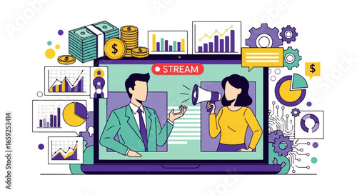 Lidé spolu mluví pomocí videokonferenční aplikace. Online obchodní jednání. On-line učení koncept vektorové ilustrace. Videohovor a chat s přítelem. Vzdálený tým, komunikační technologie.