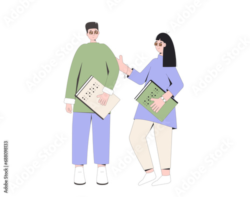 Lidé cestují vektor. Muž a žena pár turista stojící spolu čtení papír mapa ikona izolovaných na bílém pozadí