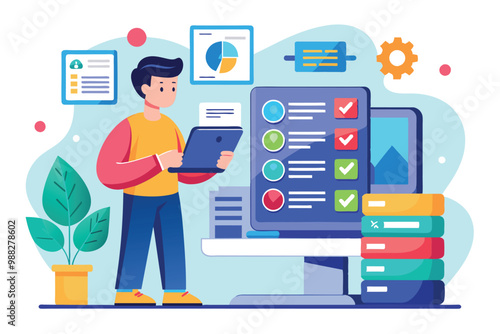 Mikro mužské a ženské postavy pomocí obrovského smartphonu s ikonami mobilních aplikací na obrazovce, vektorové ilustrace. Lidé, kteří používají gadgety moderního technologického konceptu pro webový banner, webovou stránku atd.