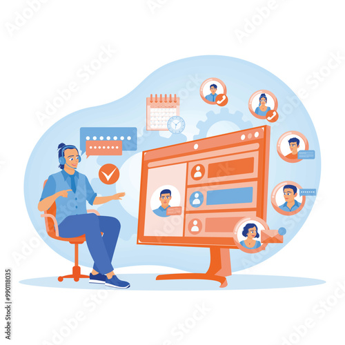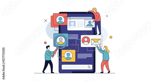 Lidé, kteří používají chytré hodinky a mobilní zařízení smartphone, plochá vektorová ilustrace. Fitness tracker. Nositelná technologie.