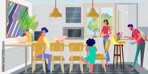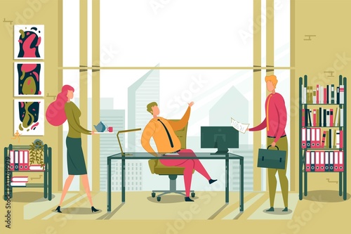 Lidé navštěvující kavárnu, obchod s oblečením, procházky po nákupní ulici města, ploché vektorové ilustrace. Šťastné dámy opouštějí lázeňský salon. High street, centrum města, veřejné místo.
