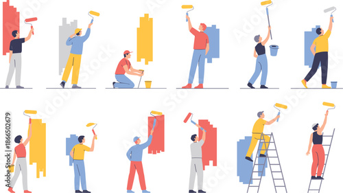 Lidé čekající ve frontě u bankomatu, vektorové ploché ilustrace. Dlouhá fronta ATM. Zákazníci stojící přímo za lidmi v jedné linii a udržující sociální distancování, v druhé nosit obličejové masky.