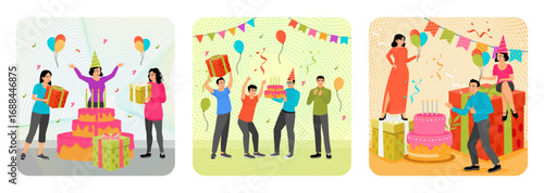 Lidé čekající ve frontě na humanitární pomoc, vektorové ploché ilustrace. Uprchlíci potřební starší stojí hned za lidmi v jedné linii a udržují sociální distancování, nosit obličejové masky v jiné frontě.