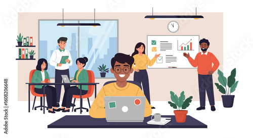 Káva jít vektorové sady. Lidé, kteří chodí s jídlem, pijí v jednorázových kartonových kelímcích. Mužské a ženské postavy ranní občerstvení. Barista dělá horký aromatický nápoj
