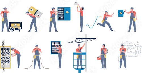 Lidé různých profesí s megafony, vektorové ploché styl designu ilustrace izolovaných na bílém pozadí. Koncept oznámení pro webový banner, webovou stránku atd.