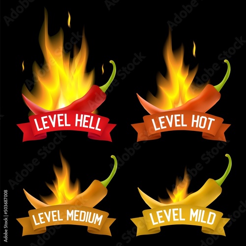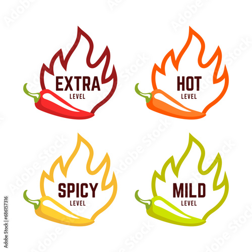 Pálivá paprika pikantní úroveň pro kečupovou omáčku vektor. Chili rating indikátor vypalování symbol design. Koncept vaření a mexické kuchyně. Logo štítku balíčku