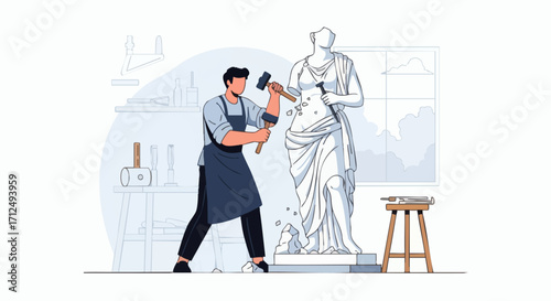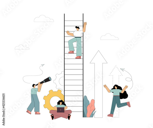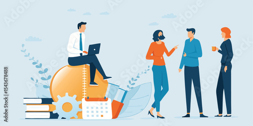 Vektorová ilustrace malých lidí, kteří vkládají knihy do hlavy velkého muže. Sebezdokonalování, trénink mozku, učení, koncept osobního rozvoje pro webový banner, webová stránka.