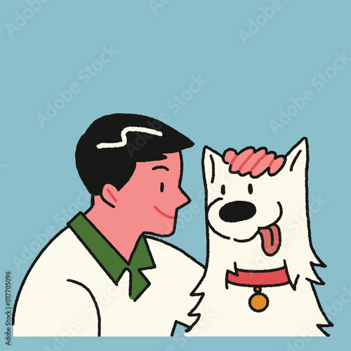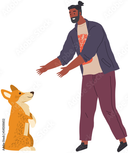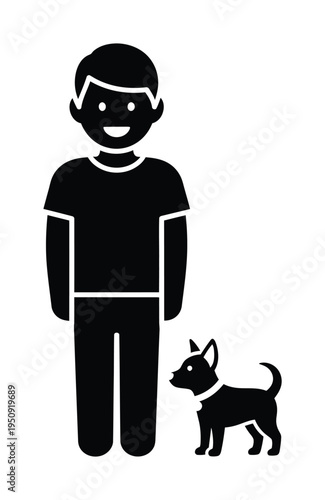 Majitel domácího mazlíčka s ikonou vektoru psa. Male puppy lover stojící izolovaných na bílém pozadí. Charakter a Psí portrét