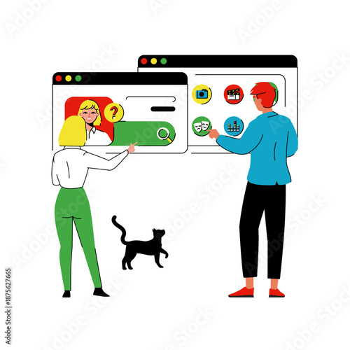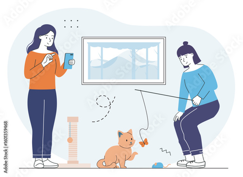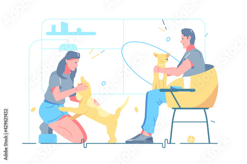 Žena pet majitel venčení psa vektor. Žena vyčištění psí hovínko do veřejného odpadu stanice ilustrace. Životní prostředí ekologická čistota a péče o domácího mazlíčka