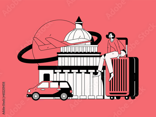 Pet shop vector plochý styl designu ilustrace. Papoušek v kleci, krmivo pro psy, kost, myš hračka, veterinář stetoskop, pilulka láhev. Zvířecí potřeby a doplňky pro domácí zvířata složení pro webový banner, webová stránka.