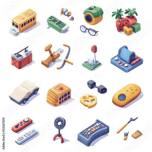 Sada ikon obchodu se zvířaty. Vektorové ploché izometrické ilustrace potřeb pro domácí zvířata a pamlsky, hračky, obojek, lůžkoviny příslušenství, chovatelské stanice, pet nese, péče soupravy, kočičí stelivo box, mísa a škrabadlo