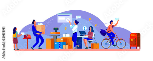 Domácí zvířata typografie vektorové banner šablony. Šťastní lidé se psy. Muži, ženy, děti chodí, krmí, trénují štěňata, navštěvují veterináře. Adopce domácích mazlíčků, kurzy výcviku psů, péče o zvířata.