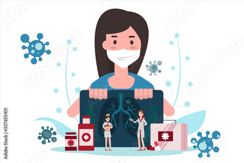 Vektorová ilustrace velké pilulky s lékárníkem, vědcem na etiketě, nemocnými a zdravými pacienty kreslené postavičky. Zdravotnictví, farmaceutický průmysl koncept pro webový banner, webová stránka.