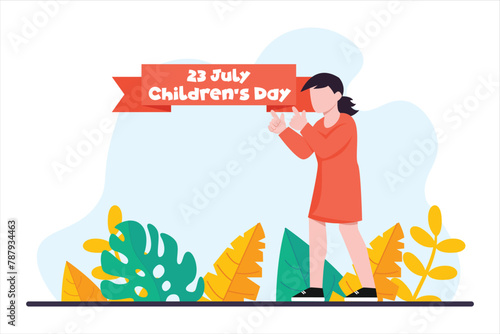 Foto Soutěž oznámení v rámečku, Megafon, ocenění pohár a mladá dívka fotografování s fotoaparátem. Vektorové ploché styl designu ilustrace. Fotografická soutěž, plakát události, banner atd.