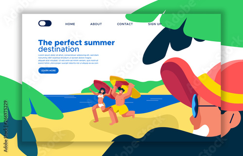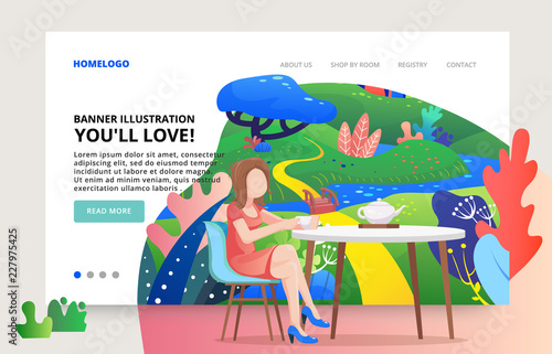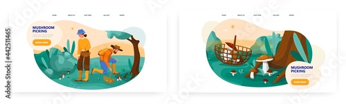 Foto lov vstupní stránky design, webové stránky banner šablona set, plochý vektor ilustrace. Samec, zvíře fotograf fotí krásné divoké jeleny v lese s kamerou.
