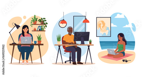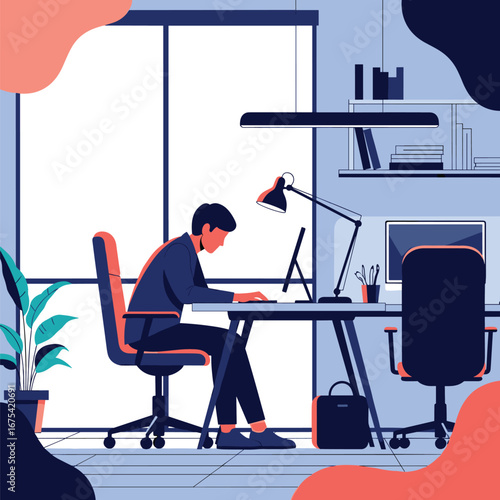 Fotograf střílí mladou dívku a roztomilého psa s profesionální kamerou ve studiu, plochá vektorová ilustrace. Fotograf profese. Focení.