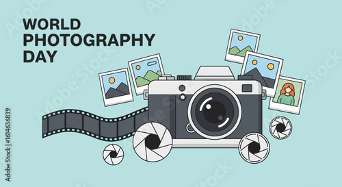 Fotografové služby vektor plochý styl designu ilustrace. Počítač, fotoaparát, digitální fotoaparát, fotografické filmy, paměťové karty. Profesionální fotografický koncept pro webový banner, webovou stránku atd.