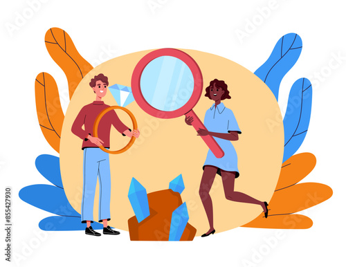Obrovský koš s hroznem, láhev vína, čokoládová tyčinka, bageta a šťastný pár mikro znaky s bbq party, chodit s někým, vektorové ilustrace. Venkovní grilovací piknik, koncept romantického rande.