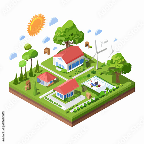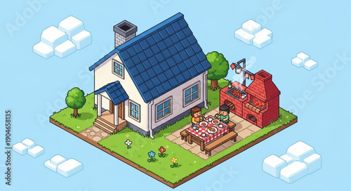 Piknik v parku izometrické objekty. Vektorové ilustrace v plochém 3D stylu. Venkovní rodinná dovolená.