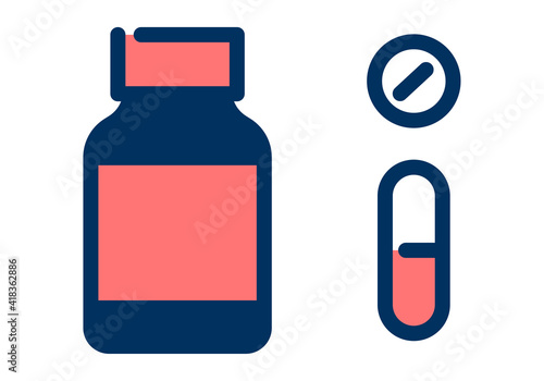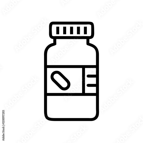 Ikona pilulky láhev. Vitamin jar vektor. Doplněk plastové nádoby izolované na bílém. Symbol medicíny, drogerie nebo veterináře zverimexu