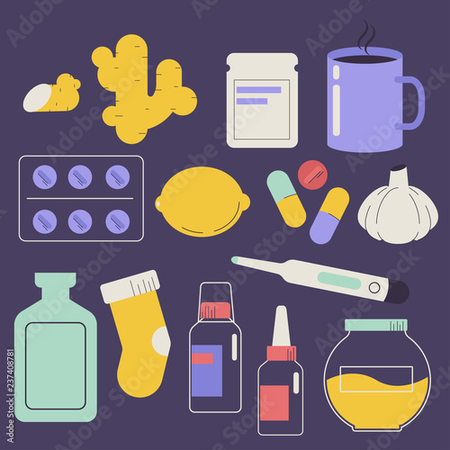 Pilulky v blistru a lahvičce, tekuté léky se štítovým lékařským vektorovým plakátem. Antibiotická farmaceutická ochrana ilustrace