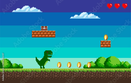 Pixel art styl západní videohry vektorové šablony. Starý design střílečky z Divokého západu se šerifem a indiánskými indiánskými postavami, které se navzájem střílejí.