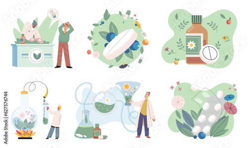 Planetárium, prostor Muzeum scéna set, ploché vektorové ilustrace. Lidé, kteří se dívají na noční oblohu, planety sluneční soustavy, hvězdy, nebeská tělesa dalekohledem, poslouchají průvodce. Astronomické vzdělávání.